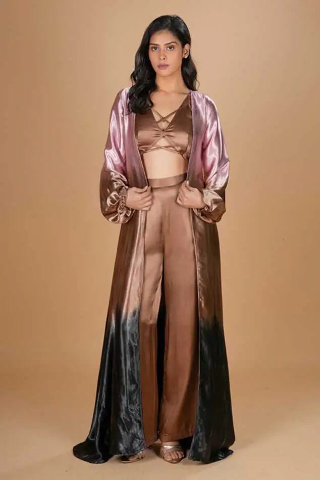 Elevate your wardrobe with the Thinker – Overlay, a luxe statement piece designed for those who love drama with elegance. Made from premium satin, this cape features a captivating ombré effect transitioning from deep brown to black, adding depth and movement to your ensemble.